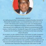 The body of former Minister will be laid to rest this coming Saturday in Enukweni, Mzimba.