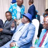 Zimba (right) shakes hands with GVH Matope while Ndirande Police chief looks on