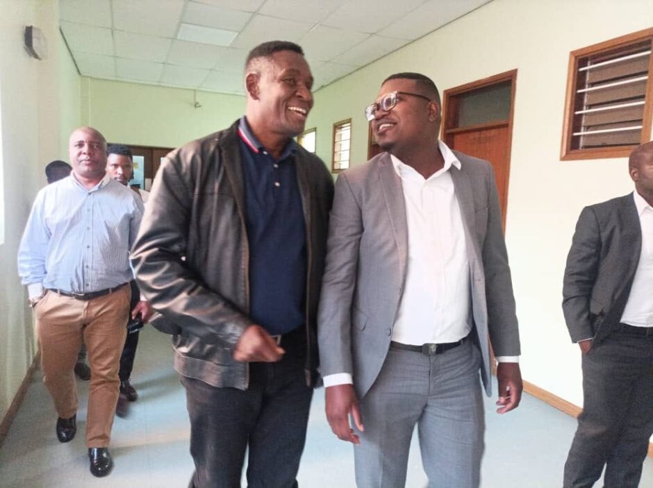 FILE: Tadikira (in grey suit) interacting with Peter Mutharika’s private body guard Norman Chisale