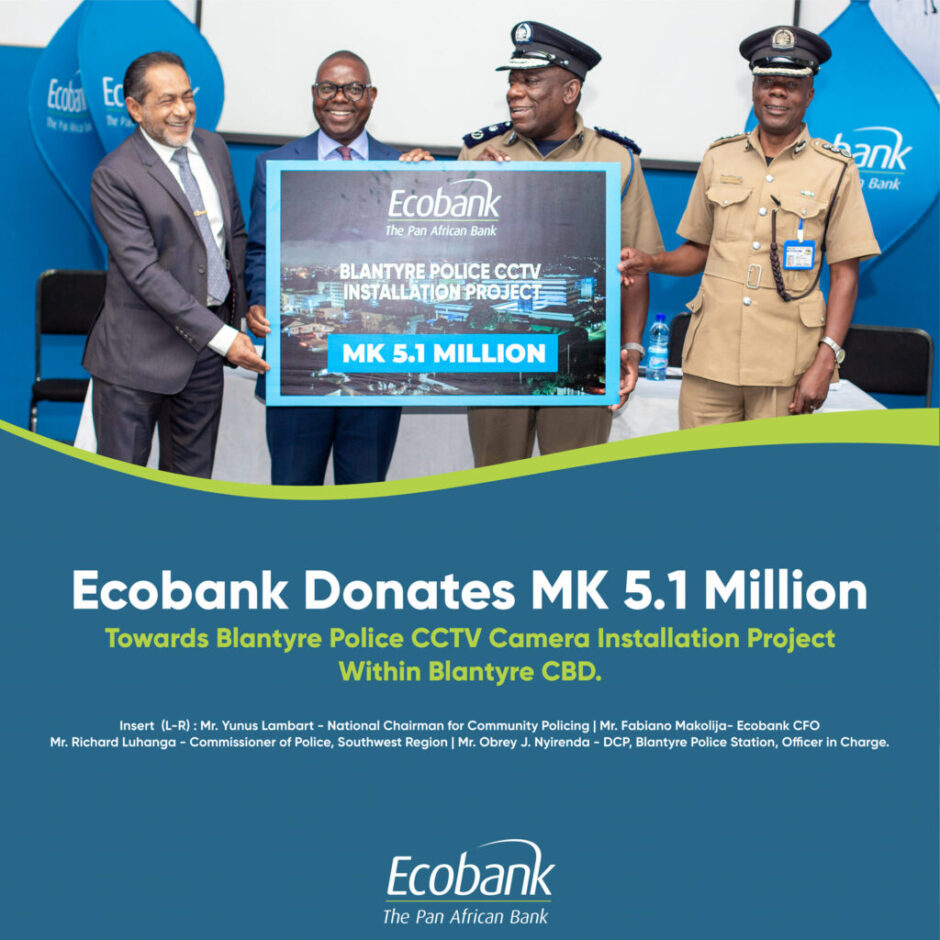 Ecobank Malawi Limited has donated K5.1 million towards the Blantyre Police Station closed circuit television (CCTV) camera installation project.