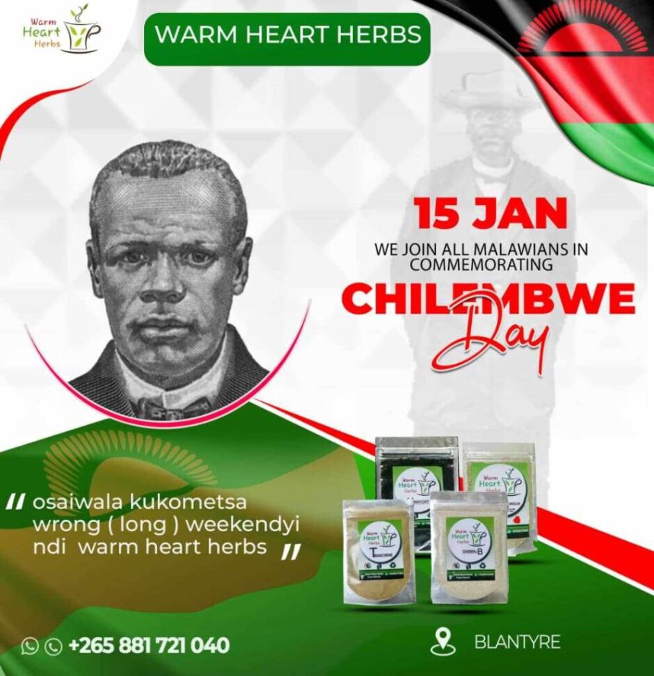 Malawi’s number one trusted source of herbs, Warm Heart Herbs has asked Malawians to celebrate Chilembwe Day and long week-end with herbal products from the company.