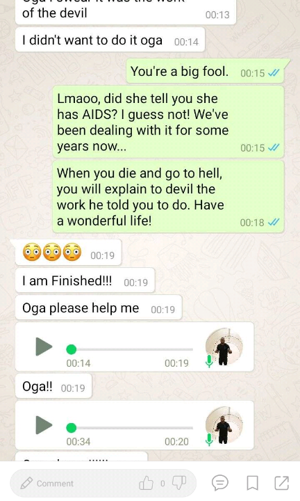 WhatsApp chat between a man and his driver has gone viral as the man innocently found out that his woman has been having an affair with his mechanic.As the saying goes ‘Nothing is hidden under the sun”.