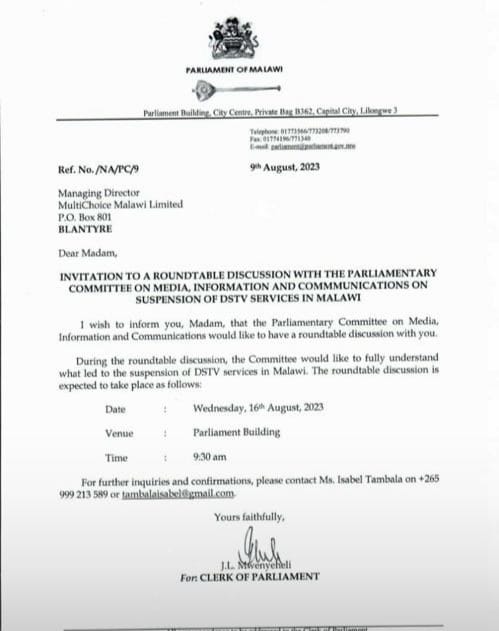 Parliamentary Committee on Media, Information and Communications has summoned MultiChoice Malawi, Ministry of Information and Malawi Regulatory Authority (MACRA) over the withdrawal of DSTV services in Malawi.